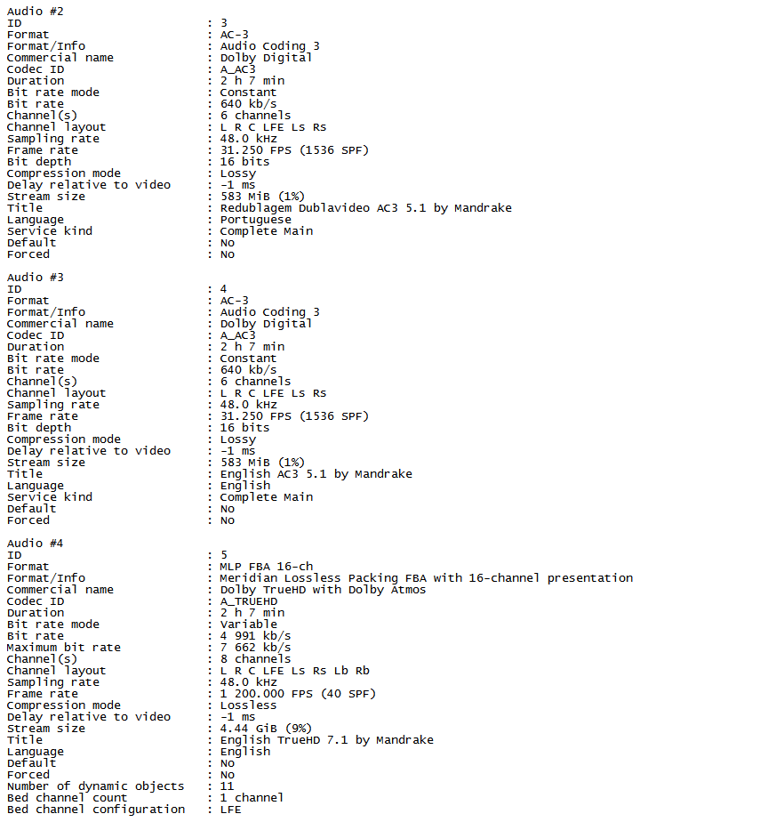1º Áudio: Português – Estúdio Megasom – AAC 5.1ch – 48 kHz – 157 kbps