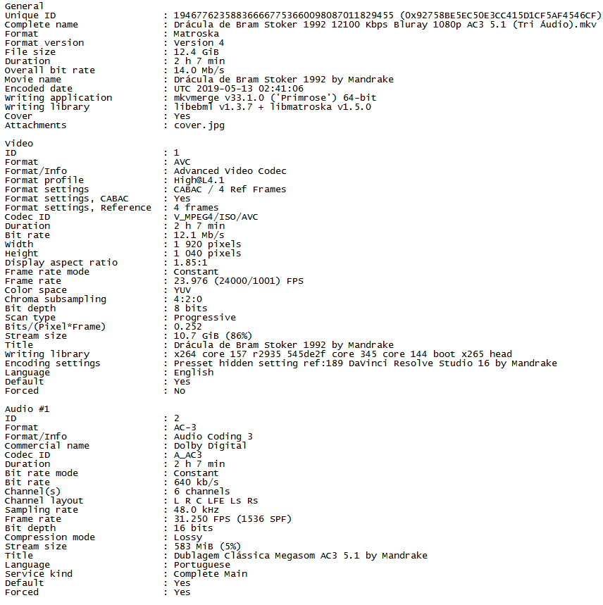 Versão Menor – 1920×1040 – x264 – AVC – 1.85:1 – 23.976 FPS – [email protected] – 3500 KBPS