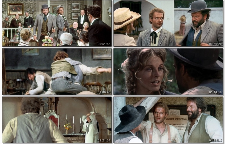 Trinity e seu meio irmão Bambino, se encontram mais uma vez na casa dos pais para o banho “anual” e um pacífico jantar em família. Logo depois, partem para a cidade de San José onde Trinity, dá uma lição em um jogador trapaceiro de como dar as cartas – e atirar – corretamente, impressionando os habitantes da cidade o suficiente para serem confundidos (com uma pequena ajuda) com respeitáveis Agentes Federais. Os dois safados resolvem tirar vantagem da confusão, porém o bandidão do local, tenta subornar os dois “agentes” (e conseguem), mas Trinity parece não querer deixar para trás a linda pioneira que acabam descobrindo uma operação de contrabando de armas e se envolvendo em mais confusões no velho oeste em busca de 50 mil dólares.